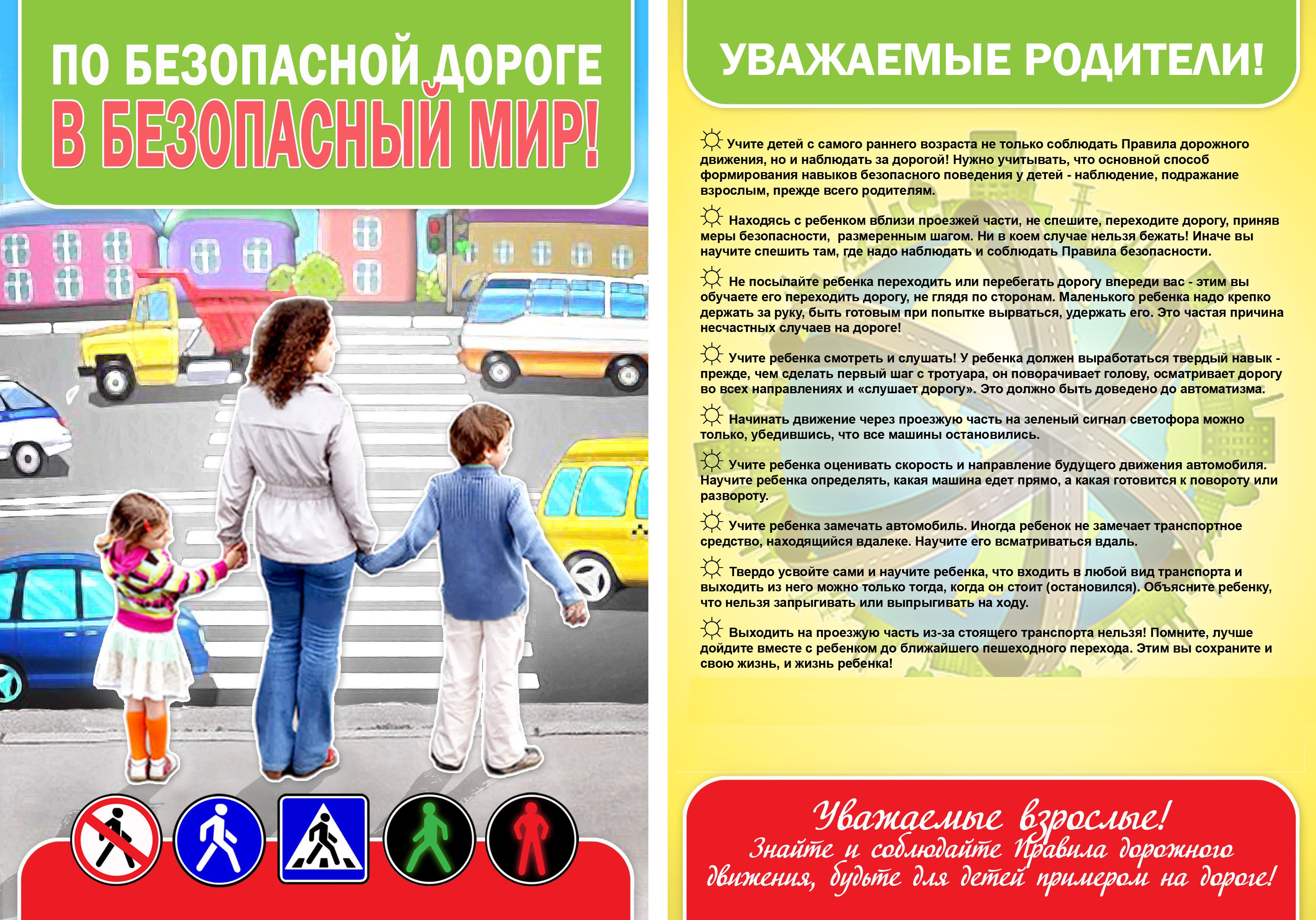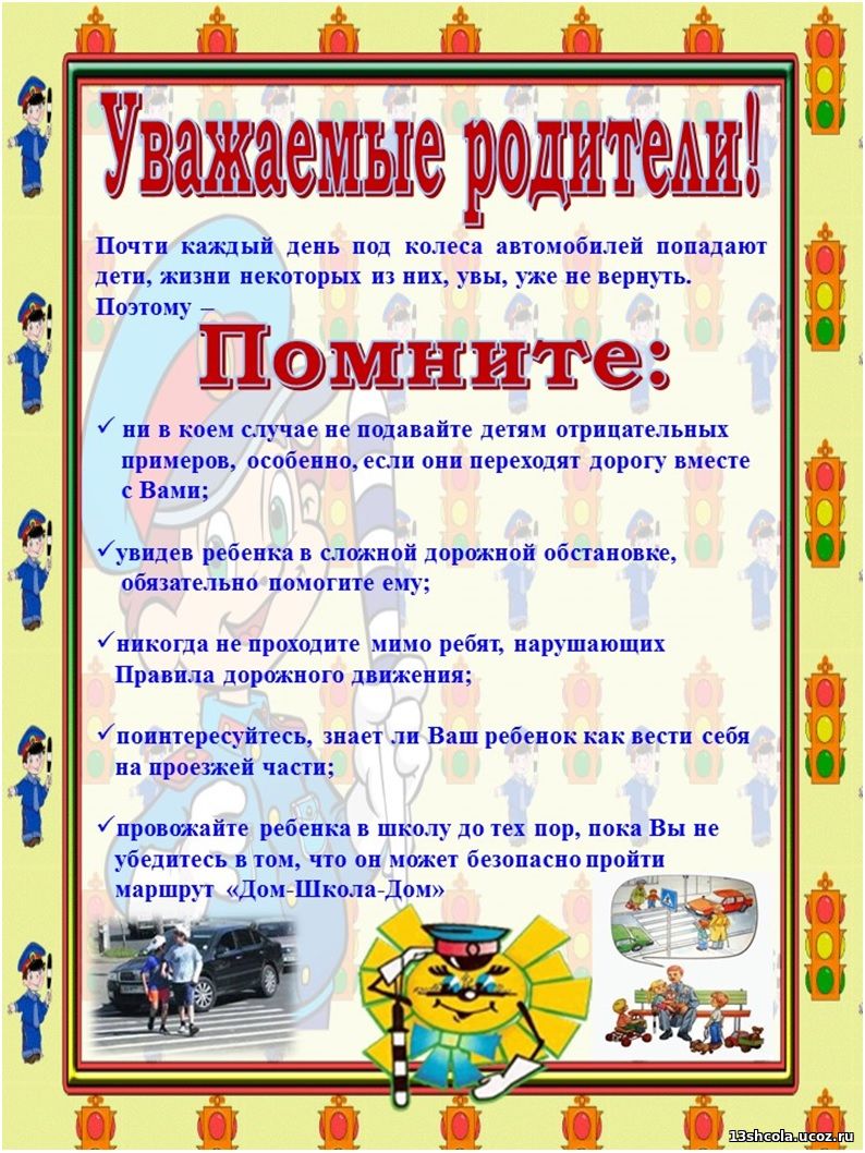 В целях безопасности ваших детей на дороге с детства приучайте ребенка к уважению ПРАВИЛ ДОРОЖНОГО ДВИЖЕНИЯ, воспитывайте в нем чувства осторожности и осмотрительности. Проводите эту работу не от случая к случаю, а последовательно и ежедневно.