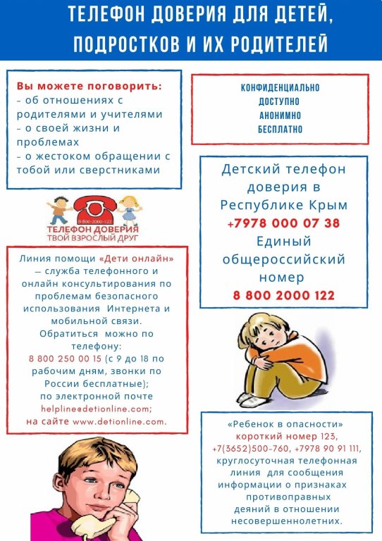 Номер «детского телефона доверия»: +7 (978) 00-00-738.